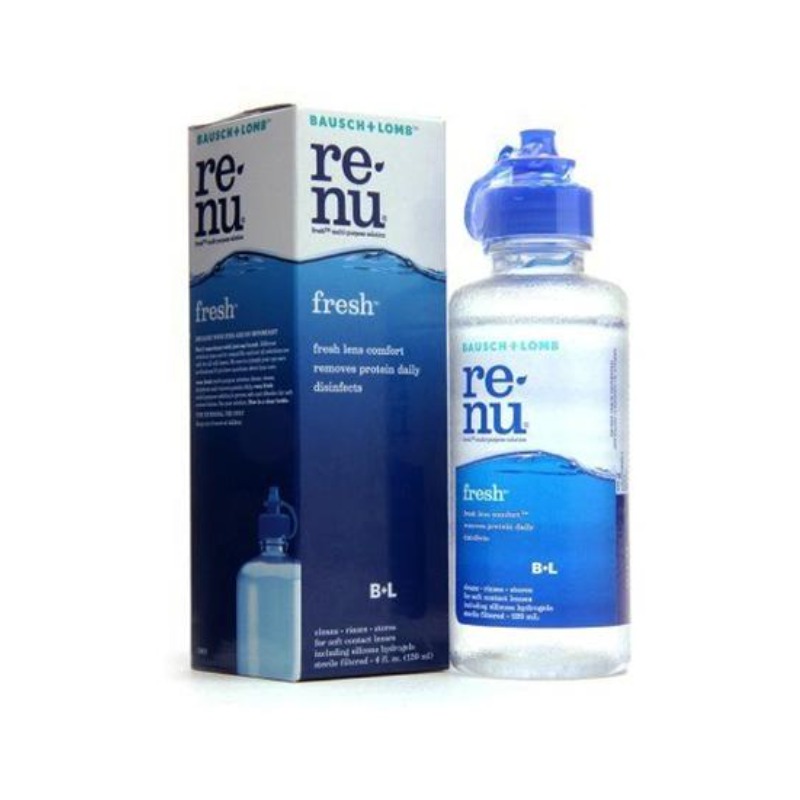 Renu Fresh multi purpose solution is specially formulated to work with your natural tears. Experience the feeling of wearing a fresh pair of lenses cushioned in moisture. Cleans loosens and removes accumulations of film, protein, other deposits, and debris from soft contact lenses. Removes protein most effectively when used daily. Destroys harmful micro-organisms on the surface of the lens. Rinses, stores, and wets lenses before insertion.
